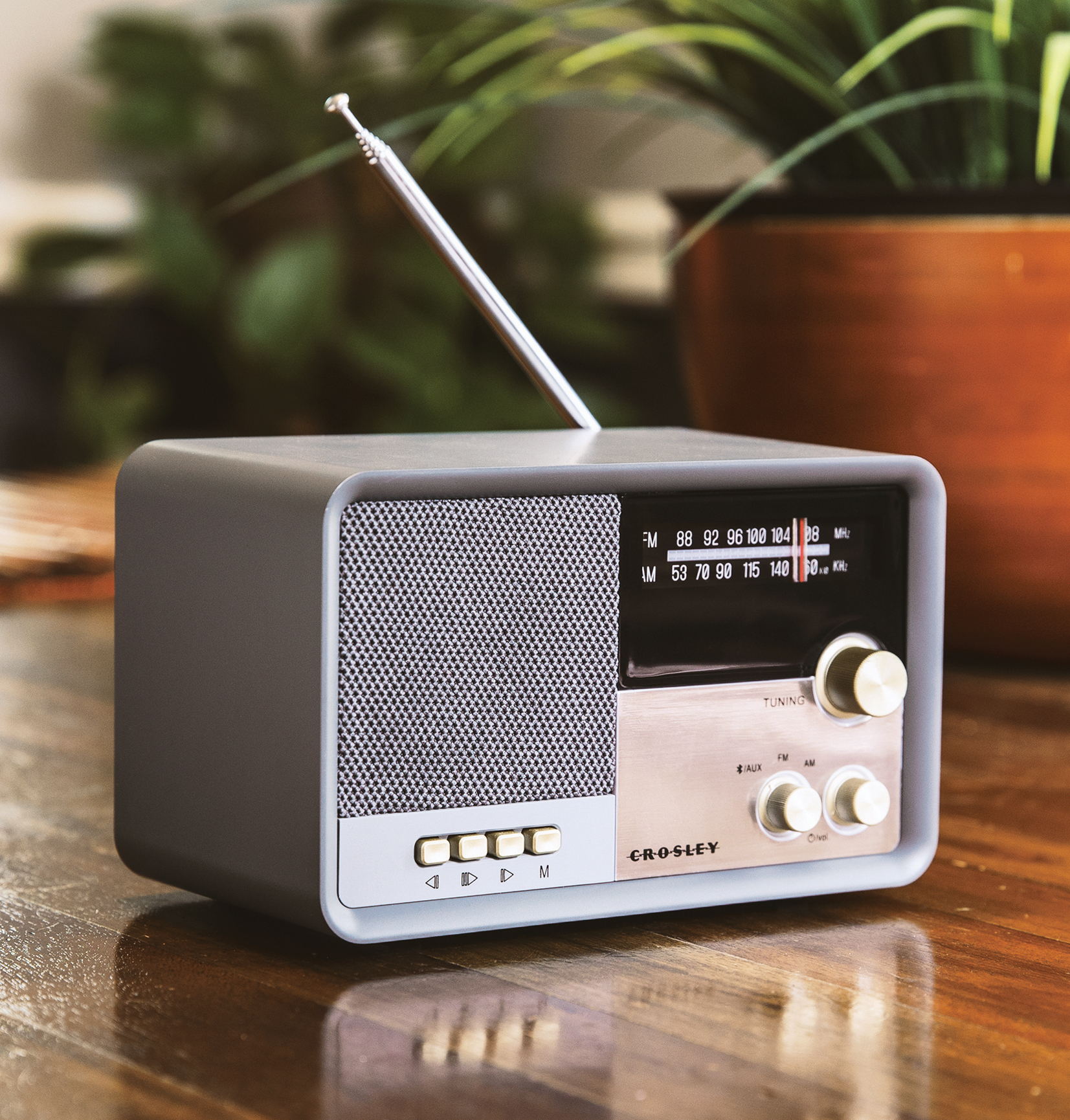 With clean, modern lines and vintage touches like gold knobs and analog dials, Tribute blends into any room while offering AM/FM radio alongside Bluetooth streaming.